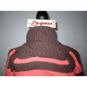 New Womens NWT $205 Eugenes S Brown Orange Mohair Sweater Stripes Pullover Long