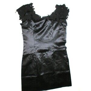 New Womens NWT $595 Designer Vivienne Tam Black Dress Silk 2 LBD Short Sexy Appl