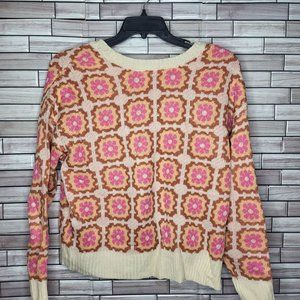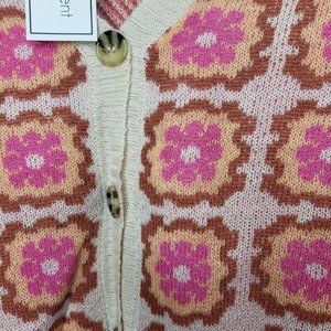 New sweater for women by Moral Society. Women’s SIZE MEDIUM. This cardigan is long sleeve in a cream trim with pink and brown floral squares. It has 4 buttons for closure and one extra. It is super soft, and comfy. This top is NEW WITH TAGS. Made of 100% acrylic, and machine washable. Great for cooler days, school, everyday use, any casual event. See pictures for details. Message with any questions.