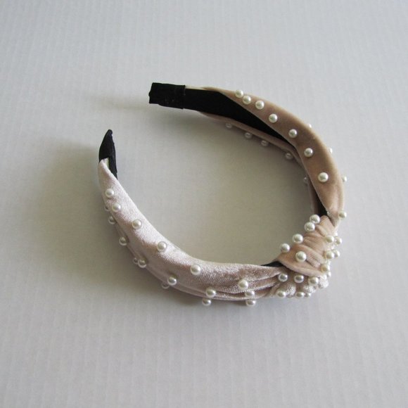 For sale is New Women’s Pearl Like Beads Beige Velvet Jeweled Hairband/Headband.