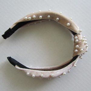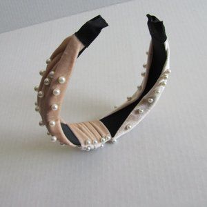 New Women’s Pearl Like Beads Beige Velvet Jeweled Hairband/Headband