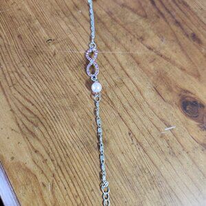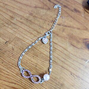 437 New gorgeous pink infinity and pink pearl set in silver bracelet or anklet
