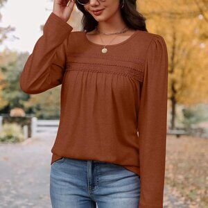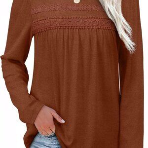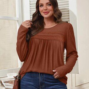 New Women's Plus Size Long Sleeve Lace Blouse in Caramel - Fall Casual Dressy Ma