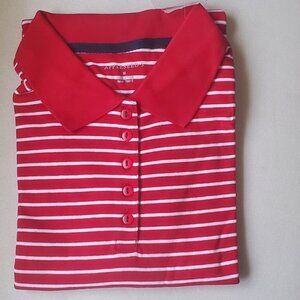 New Woman Red Stripes Appleseed's Polo Shirt. Can fit a Size medium n Large. Brand New in package.