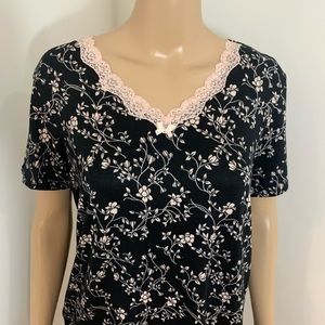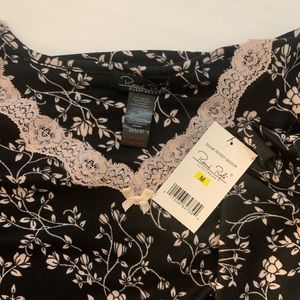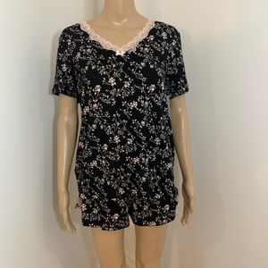 New Womens Rene Rofe 2 PC Black Floral Pajama Set