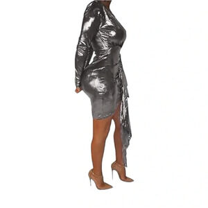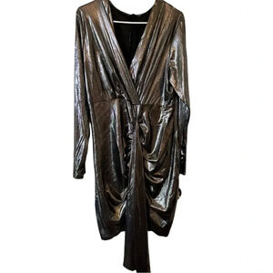 New Women's Sexy Dress Deep V Neck Long Sleeve Ruched Sparkly Bodycon