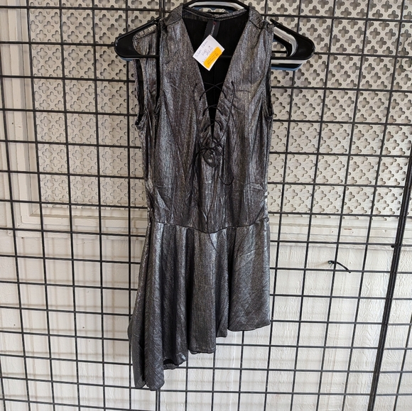 Brand New Womens silver mini dress with asymmetrical hem Can combine with other listings for better deals and shipping!