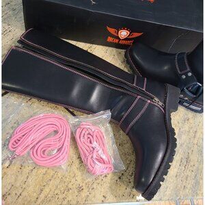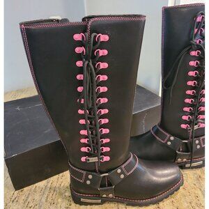 New? Women's Size 10 Motorcycle Boots Pink Black Lace up Zipper Dream Apparel®