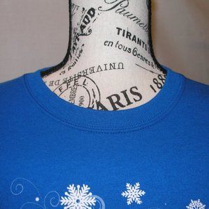 New Women's Small Jerzees Blue Fleece Sweatshirt Screen Printed Penguins