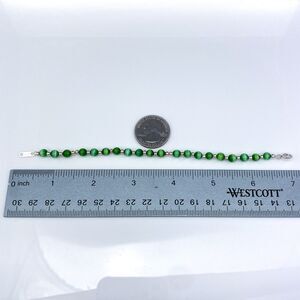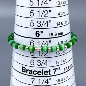 New Women's Sterling Silver 925 Green Synthetic Cat's Eye Beaded Bracelet 7"