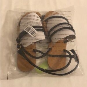 This pair of flat sandals features a strappy faux suede design, with wraparound ankle straps that close together with a buckle, and an open toe.