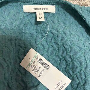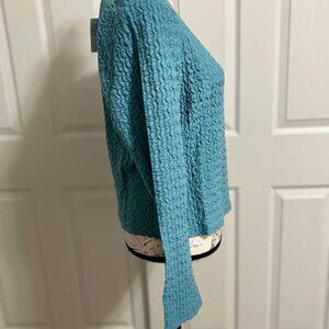 ☆ New Women's Textured Woven Blouse Color Undefined Almond Aegean Sea Crop Top. The necklace is not for sale. Just for props