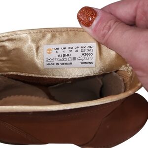 Leather-wrapped heels are 3.4 inches/8.5 cm high