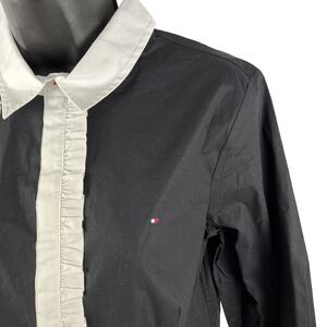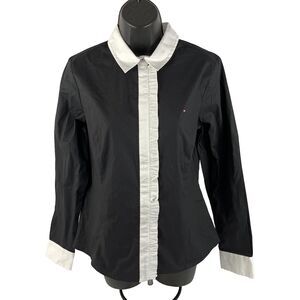 New Women’s Tommy Hilfiger LS Tuxedo Ruffle Button Up Shirt Sz L Black White