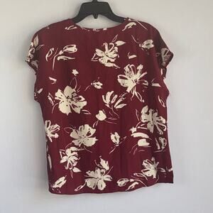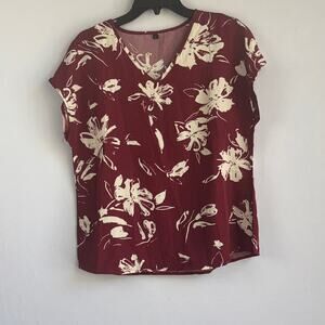 Women's Two-Piece Top and Pant Set Size Large Burgundy Short Sleeve Wide Leg