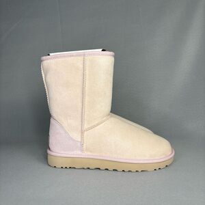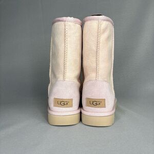 Women's light pink, Seashell UGG Classic Short boots in size 7. These UGG Australia boots are a range from coquette, pastel, feminine, bohemian, boho, festival, Lana Del Rey, California, to Malibu vibe. This color is sold out, very difficult to get, no longer available in stores!