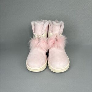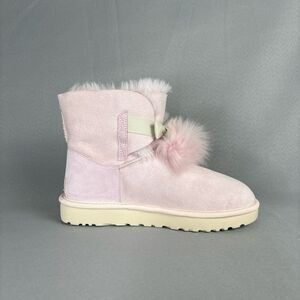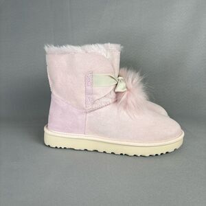 New Womens UGG Boots 9 Seashell Baby Pink Gita Bow Mini Suede Coquette Very Rare