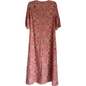 New Women's V-Neck A-Line Maxi Dress Pink & Beige Pattern Small Short Sleeve• V-neck design