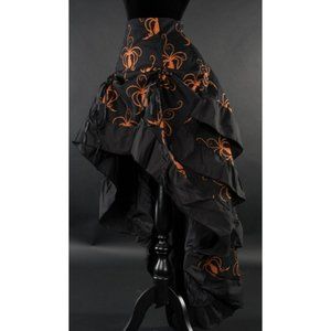 New Womens Victorian Gothic Steampunk Bustle Ruffle Skirt Brown Black Octopus