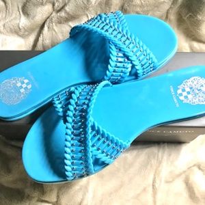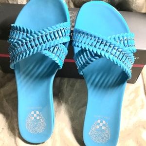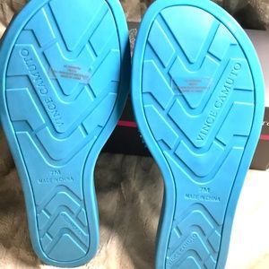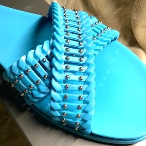 New Women’s Vince Camuto Erinda Jelly Slip On Slide Flatform Silver Stud Aqua 7