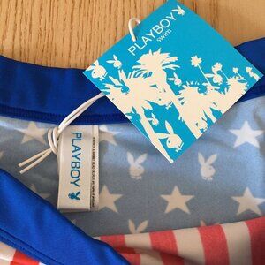 New Women’s Vintage Playboy Patriotic American Flag Swimsuit Bikini Skirt Cover-Up