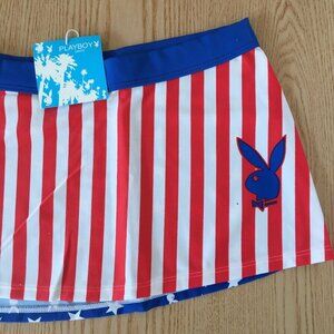 New Womens Vintage Playboy Patriotic American Flag Swimsuit Skirt Cover-Up Large