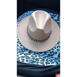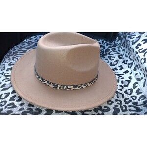 New! Women's Wide Brim Felt Fedora Panama Hat with Leopard Print Buckle