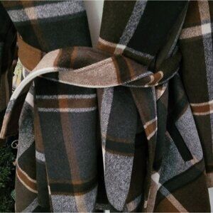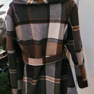 New Women's Wool Coat Couture Equestrian Preppy Luxury 2X XXL Brown Plaid