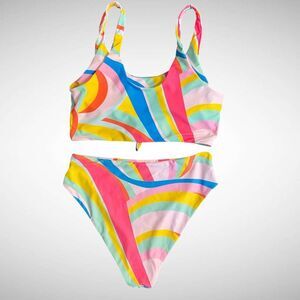 This New Womens Zaful Two Piece High Waisted Tankini Bikini Swimsuit Multicolor -L(8)