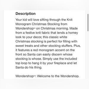 New! Wondershop, Lined, White, Knit Stocking with Red Monogram “Z”.