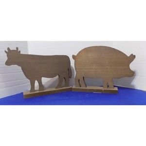 New Wood Pig Cow Statue Figurine Rustic Country Farmhouse Decor