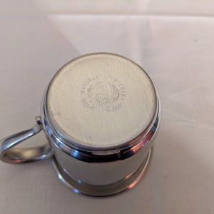 Lovely baby cup made in CT at Woodbury Pewter. Safe for drinking, no lead. Baby can drop or bang it and make noise with it! Marked on bottom.