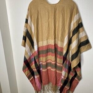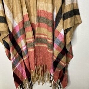 New Woolrich Tan Black Red Plaid Shawl Cardigan Justine Shrug Pancho blanket wrap