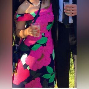 New Work and Company Vibrant Floral Off Shoulder Cocktail Dress, Size 4
