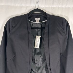 New Worthington Blazer Women's Medium Solid Black Open Front Office Work