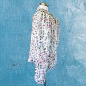 Worthington Multicolor Tweed Collarless Fringe Blazer