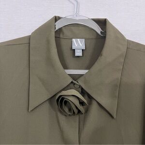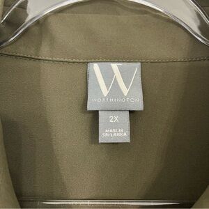 New Worthington Olive Green Attached Rose Soft Flowy Button Down 2X Preppy Office