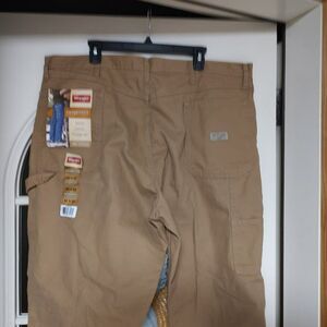 New with tag wrangler relaxed fit carpenter pants size men's 42/32. They are a khaki color.