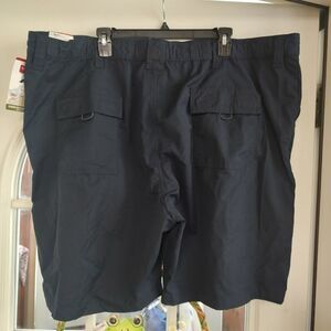 New with tag wrangler relaxed fit classic flex waist shorts men's 48. They are navy blue 9 inch inseam back pockets velcro closure.