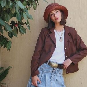 New With Tag Wyeth Aden Hand Crocheted 100% Raffia Straw Chocolate Bucket Hat