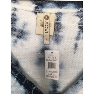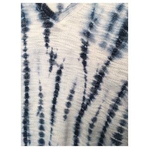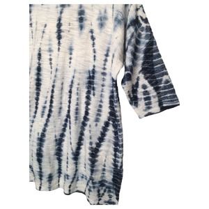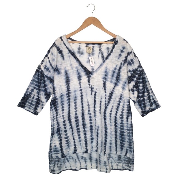 New XCVI Top Womens L Tie Dye Tunic Boho V Neck Short Sleeve Textured Knit Blue