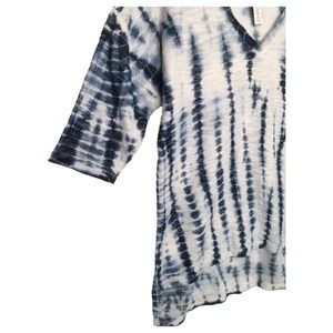 New XCVI Top Women's Tie Dye Tunic V Neck Short Sleeve Textured Knit Blue