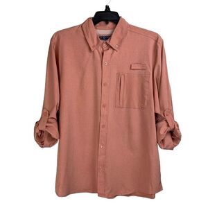 New XCaster By Tallwoods Peach Roll Tab Sleeve Quick Dry Button Polo Shirt Size