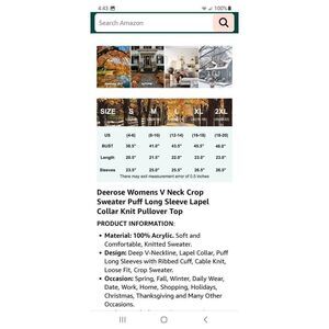 New, Never Worn, No Tags Attached Women's Size XL Deerose Winter Sweater Crop Top V-Neck Lapel Collar Long Sleeve Knitwear