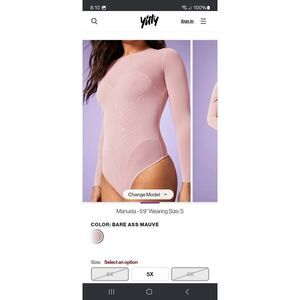 New With Tags Attached Women's Size XL Fabletics Yitty Bare As* Mauve Mesh Me Smoothing Sleeved Thong Bodysuit Long Sleeve Shirt Top Shapewear