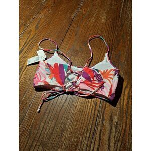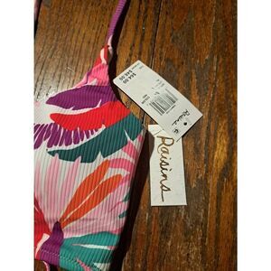 New With Tags Attached Women's Size XL Raisins Padded, Lined, Ribbed Material Strappy Summer Bra Swimsuit Bathing Suit Swimwear Bikini Top- Tropical, Hawaiian, Floral Print- White, Red, Pink, Purple, Green