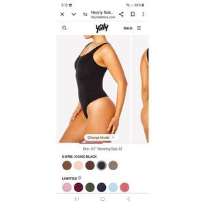 New XL-XXL Fabletics Yitty Black Nearly Naked Shaping Thong Bodysuit Shapewear