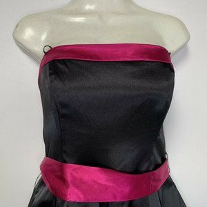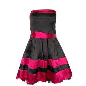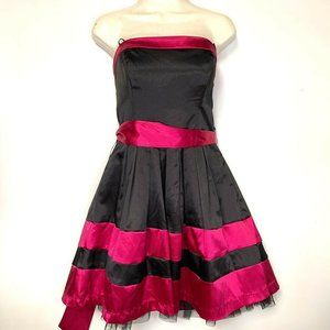 New XOXO Black Hot Pink Strapless Zip Up Layered Junior Party Formal Dress Sz 9