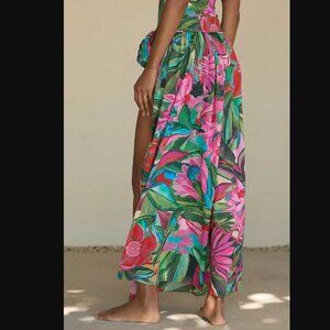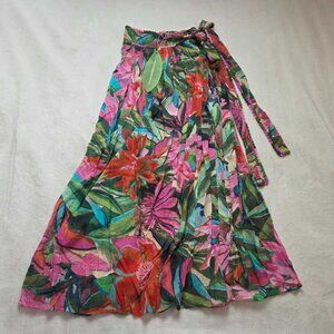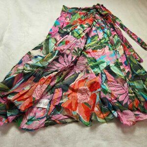 New XS Farm Rio x Anthropologie Jardin de Reve midi wrap open leg skirt