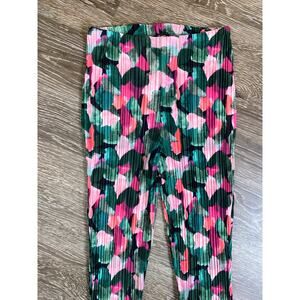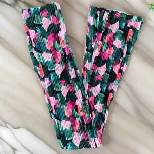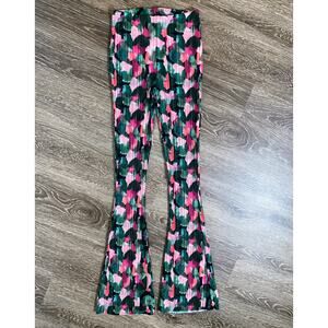 New XS Green Pink Plisse High Rise Flare Pants Textured Retro Abstract Patterned
